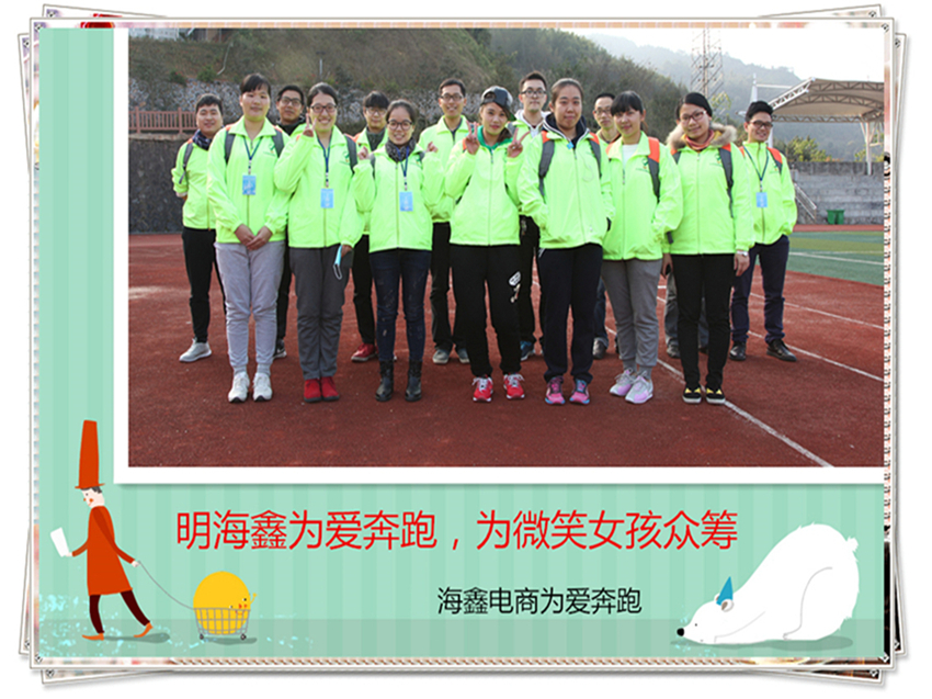 為響應三元區商務局、三元區團委、三元區電商協會聯合舉辦的“奔跑吧,電商人”城市綠道慢跑活動眾籌活動,福建明海鑫企業股份有限公司旗下的海鑫電商團隊員工參加本次活動,為微笑女孩陳春花獻愛心。福建明海鑫企業股份有限公司榮獲特殊貢獻獎。